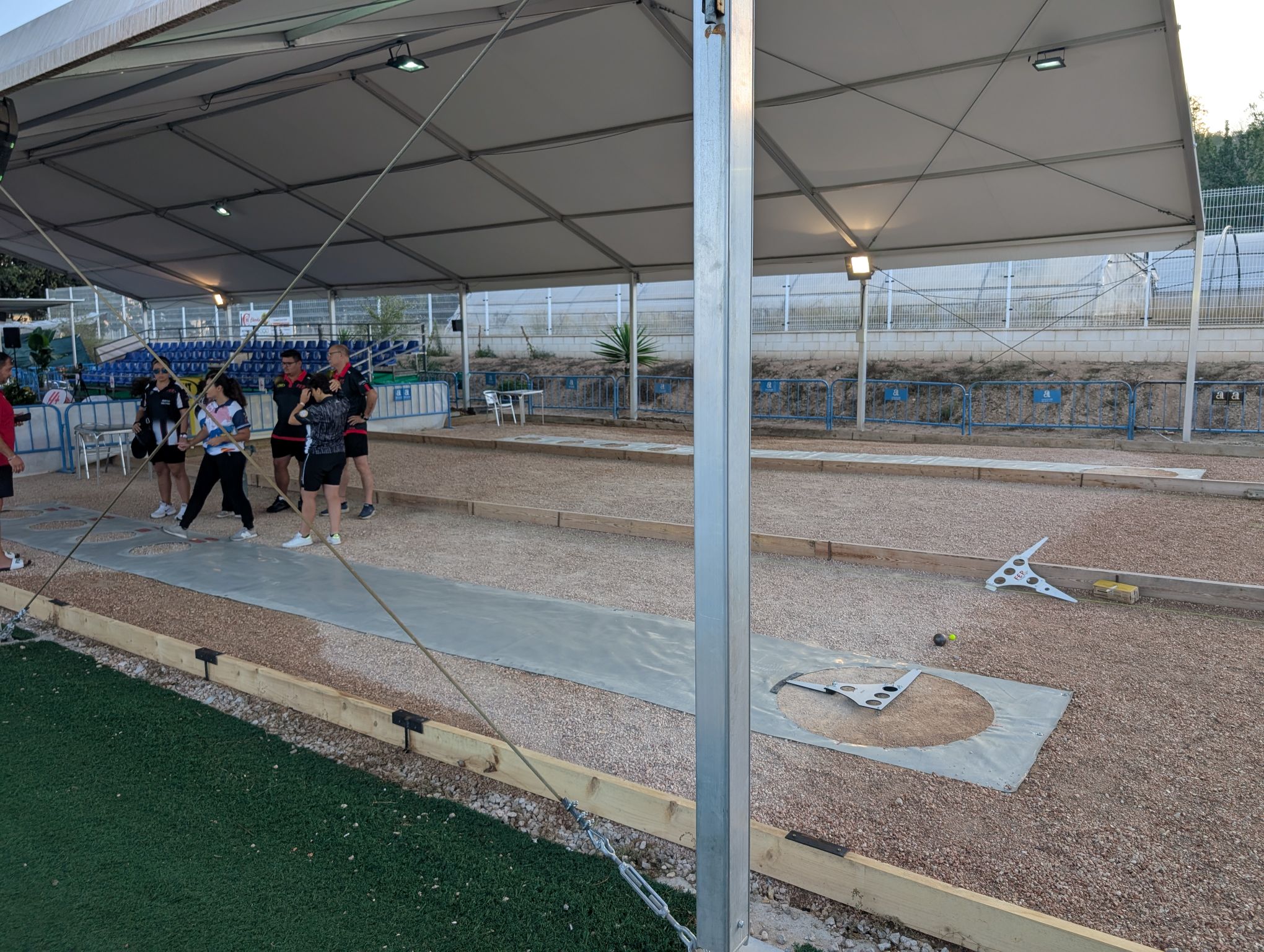 Neljapäeva hommikul istusime bussi ja sõitsime pool tundi võistluspaika, et avatseremoonial osaleda ja tulistamise harjutuse võistlusega algust teha. Sarnaselt hotellile asus võistluspaik üsna inimtühjas kohas, kuhu juhuslikult ei satu tõenäoliselt ükski pealtvaataja – Benejúzari linnast umbes 2 km kaugusel spordiväljakute kompleksis. Võistluseks ette nähtud väljakud tundusid olevat statsionaarsed ning harjutamiseks oli palju väljakuid tehtud nende kõrvale. Väljakutel numbriga 1-4 oli katus peal ja seal toimusid ka tulistamised.